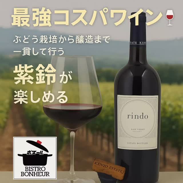 ✨大田区・久が原のビストロ「ボヌール」より✨ 本日は特別な1本をご紹介します🍷 それは…ケンゾーエステイトのフラッグシップワイン「紫鈴(りんどう)」。 カリフォルニアの豊かな自然が生んだこの赤ワインは、 圧倒的な香りと深み、そしてエレガントな余韻が魅力。 そんな「紫鈴」に合わせて、ボヌールシェフが腕によりをかけて作ったお料理と共に。 ひと皿ひと皿が、ワインの魅力を最大限に引き立てます🍽️ 特別な日、特別な人と。 この一杯が、きっと忘れられない夜にしてくれるはずです。 ぜひ一度、ご体験ください🍇 #ビストロボヌール #久が原グルメ #紫鈴 #ケンゾーエステイト #大人の時間 #東京ワインバー #ワイン好きな人と繋がりたい #bonheur_wine_time