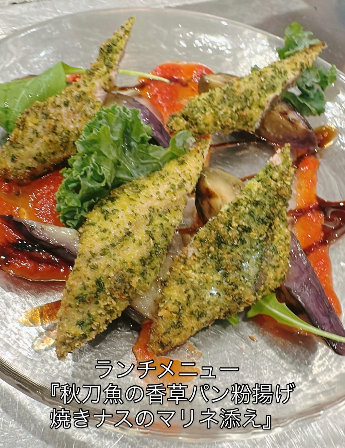 おはようございます❗️ ビストロボヌールのインスタグラムをご覧いただきありがとうございます😊 本日はランチ前菜のご紹介📣 🍂秋の味覚🍂 脂ののった秋刀魚に、香り豊かな特製香草パン粉をまとわせて香ばしく揚げました🐟✨ 衣はサクッと、中はふっくらジューシーに仕上げております。 添え物には、こちらも秋らしい「焼きナス」のマリネをご用意。 香ばしいナスの風味が秋刀魚の旨みをより一層引き立てます。 秋の味覚を一皿にギュッと詰め込んだ前菜を、ぜひご賞味ください♪ #ビストロボヌール #久が原ランチ #久が原グルメ #大田区ランチ #大田区グルメ #秋刀魚料理 #秋刀魚の香草パン粉焼き #秋刀魚の前菜 #秋の味覚 #香草パン粉 #焼きナス #秋ランチ #魚料理好き #季節の前菜 #旬を味わう #ご夫婦でランチ #ママ友ランチ #カップルランチ #隠れ家ビストロ #幸せなひととき