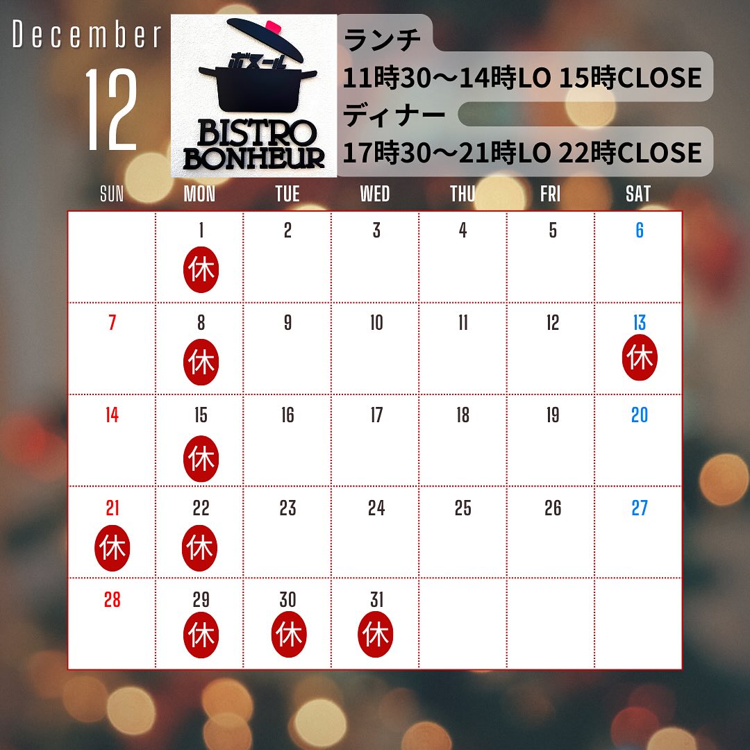 こんばんは、ビストロボヌールのインスタグラムをご覧いただきありがとうございます😊 12月のお問い合わせも増えてまいりましたので、営業カレンダー🗓️のお知らせです。 23・24・25日のディナー🍽️は、平日限定のボヌールコースはお休みとなり、 「クリスマスディナーコース(7,700円)」に加えて、アラカルトメニューもご利用いただけます。 コース内容は、もう少しお待ちくださいませ🙇‍♂️ ビストロボヌール初めてのクリスマス🎄 皆さまに喜んでいただけるよう、心を込めて準備しております。 ご予約お待ちしております✨ #ビストロボヌール #久が原グルメ #池上線グルメ #大田区グルメ #ビストロ #フレンチ #クリスマスディナー #クリスマス2025 #クリスマスコース #クリスマス料理 #グルメな人と繋がりたい #ディナーコース #季節のメニュー #ご予約お待ちしております #久が原ランチ #久が原ディナー #大人の隠れ家 #記念日ディナー #夫婦ディナー #ママ友ランチ