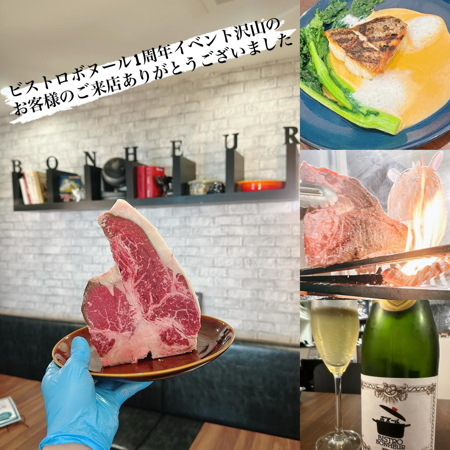 こんばんは、ビストロボヌールのインスタグラムをご覧いただきありがとうございます😊 おかげさまで、あと数日でボヌールは1周年を迎えます🥹 日頃ご来店いただいている皆さま、本当にありがとうございます。 現在、周年に向けてTボーンステーキをじっくり熟成中です🥩✨ 旨味がしっかり乗った、特別な状態でご用意いたします。 🍷ケンゾーエステイト グラスワイン         and 🍽1周年限定ディナーコース         お楽しみください。 周年期間は数量限定のご用意となりますので、 ぜひお早めのご予約をお待ちしております❗️ 特別な1周年を、ボヌールでゆっくりお過ごしください😊 #ビストロボヌール #久が原グルメ #大田区グルメ #記念日ディナー #ワイン好きと繋がりたい